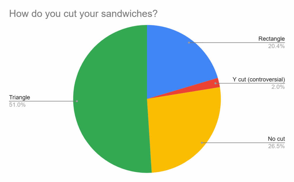 And the TRIANGLES have it! And is apparently backed up by maths…. Triangles or Rectangles: What’s the Best Way to Cut a Sandwich?